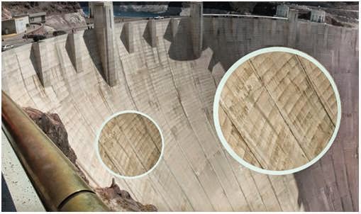La solución para evitar este problema fue que los muros de la presa no fueran construidos como un único bloque de hormigón sino que fuera armado con una serie de ménsulas trapezoidales apiladas para disipar el calor producido por el curado del hormigón.