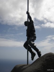 Al empezar la segunda parte de la prueba grito…»¡En el nombre de la Virgen!», mientras su cuerpo volaba sobre el vacío y llegaba otra vez a la orilla.
