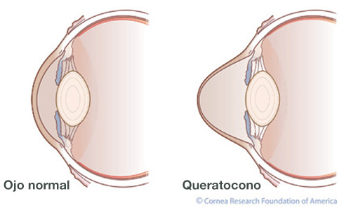 El queratocono provoca miopía y astigmatismo típicamente irregular, distorsión visual con borrosidad en pacientes jóvenes que se restriegan los ojos con asiduidad.