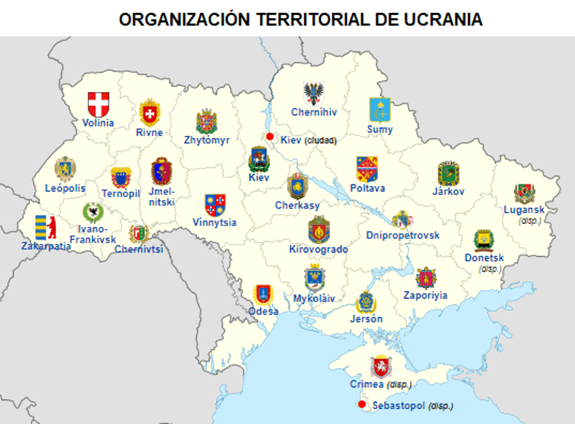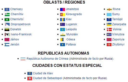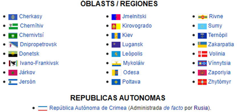 Las Provincias o Regiones ,Oblast , de Ucrania son