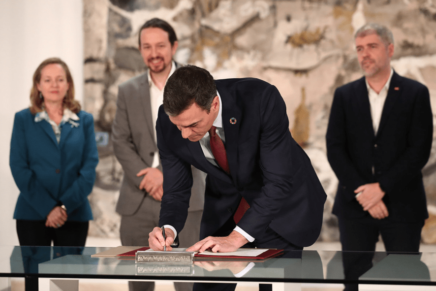 El presidente Sánchez firmando un decreto